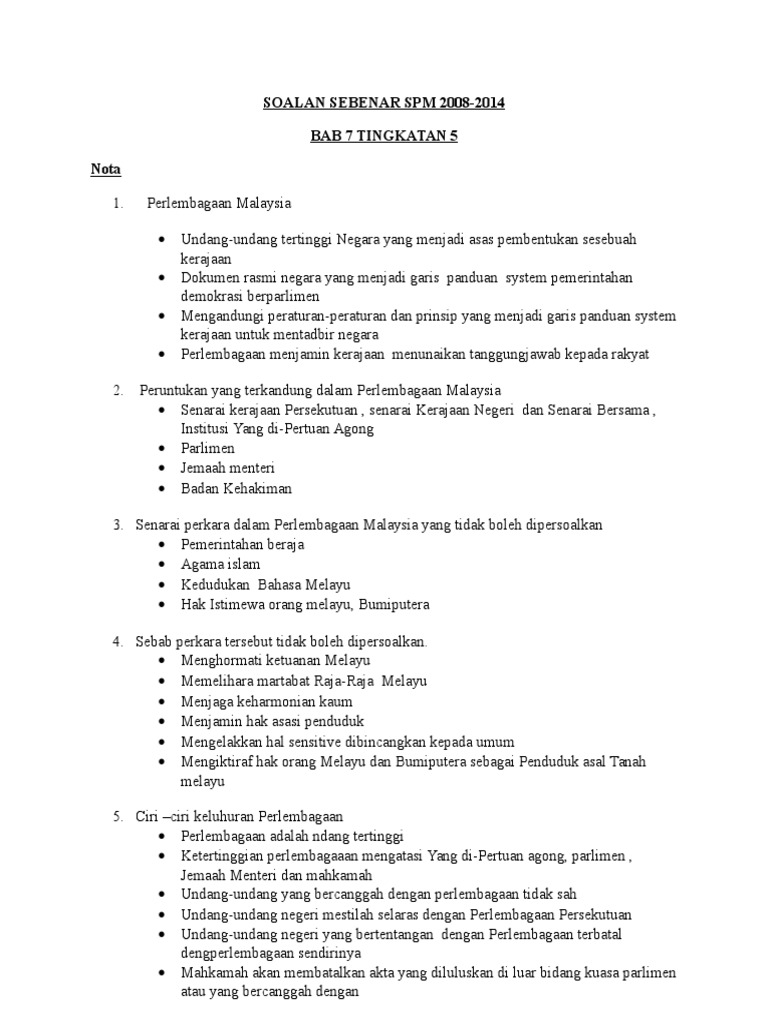 1MEMBACA SOALAN Pelajar seharusnya membaca dengan teliti setiap arahan soalankehendak dan tugasan soalanPelajar perlu membaca dan memahami arahan soalan terlebih dahuluArahan soalan bagi kertas 2 menjelaskan bahawa pelajar perlu menjawab semua soalan struktur daripada Bahagian A dan 3 soalan daripada mana-mana lima solan dalam. Prinsip keadilan dan keprihatinan dalam kehidupan harian. 334 Negeri Sembilan Prinsip Demokrasi dan Konsep Persekutuan.